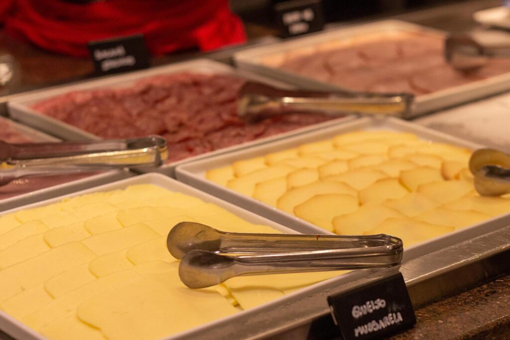 Quentes: Quiche de frios; milho verde na manteiga; esfirra de carne.