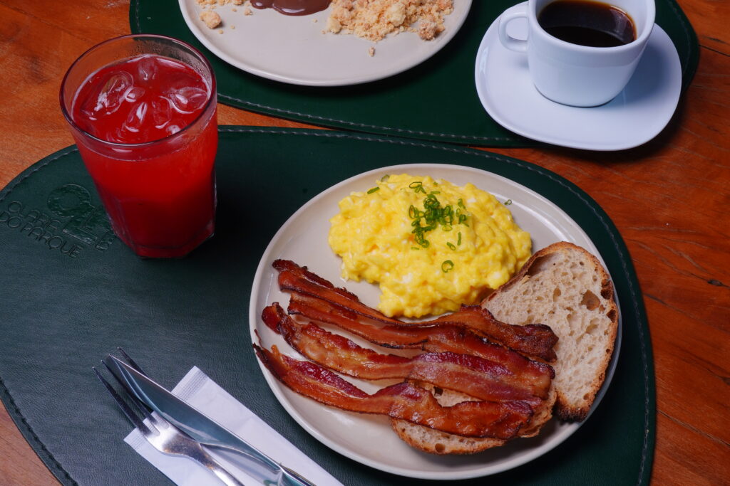 • Ovos mexidos da casa: cremosos, com uma generosa fatia de pão de fermentação natural;